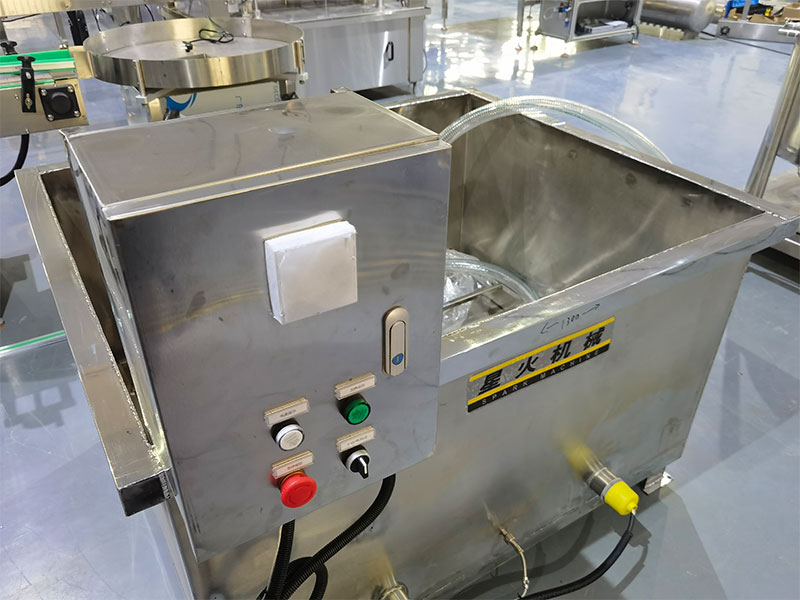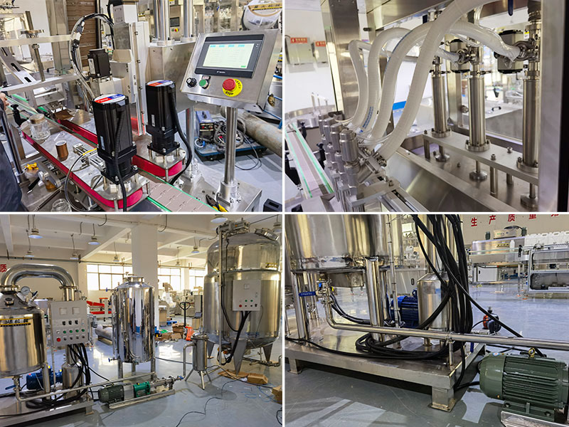 蜂蜜灌裝機(jī)旋蓋生產(chǎn)線整體運(yùn)作模式采用PLC+HMI智能操作原理,通過一鍵式便捷式的操作,可提高蜂蜜從原材料直至成品輸出全部工序,操作人員僅需在觸控屏上選擇相對應(yīng)的生產(chǎn)規(guī)格,蜂蜜灌裝機(jī)旋蓋生產(chǎn)線可自動開始投產(chǎn),為了確保灌裝食材的安全性,這一整套機(jī)械設(shè)備全部采用不銹鋼材質(zhì)打造,不僅擁有良好的密封性和耐腐蝕性,還可以延長設(shè)備的長久使用期限,蜂蜜灌裝機(jī)旋蓋生產(chǎn)線啟動后,振動電機(jī)帶動篩網(wǎng)振動,使的蜂蜜快速通過網(wǎng)篩,經(jīng)過篩選后的蜂蜜需經(jīng)過加熱才能保持流動狀態(tài),以便于后續(xù)的灌裝,在進(jìn)入投產(chǎn)工序時(shí),理瓶機(jī)開始自動整理雜亂的瓶子排列程序,輸送帶則會帶動瓶子進(jìn)入灌裝區(qū)域,在灌裝區(qū)域內(nèi)紅外感應(yīng)控制器將會實(shí)時(shí)檢測瓶子的進(jìn)出,檢測到容器口時(shí),灌裝頭下降,已經(jīng)被提煉好的蜂蜜將會在全封閉式的狀態(tài)下快速充填進(jìn)瓶、旋蓋、貼標(biāo)的生產(chǎn)工序。