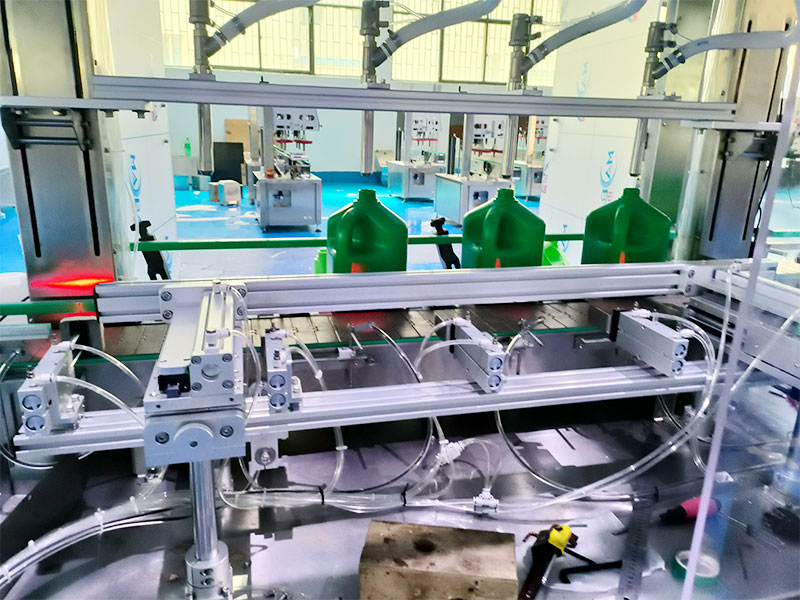 4、優質電機選配,針對于高粘度物料灌裝,5-25升液體灌裝機設備采用變頻電機控制,灌裝速度可連續調節,避免物料因流速過快產生氣泡,保證灌裝運行平穩操作。