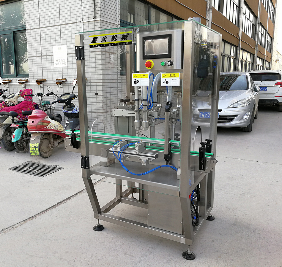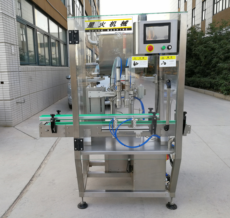 該機(jī)適合灌裝顆粒類(lèi)醬料,是全自動(dòng)辣椒醬灌裝機(jī)和豆豉醬灌裝機(jī)通用設(shè)備,目前在國(guó)內(nèi)屬于比較先進(jìn)的灌裝機(jī)產(chǎn)品,他的產(chǎn)生解決了以前辣椒醬廠家需要大量人力才能完成灌裝的難題,并且提高了產(chǎn)品的灌裝精度。該機(jī)和物料接觸部位全部采用316L不銹鋼制成,動(dòng)力使用臺(tái)灣亞德客氣缸推動(dòng),整機(jī)干凈大方、動(dòng)力強(qiáng)勁,使很多客戶(hù)順利解決了醬料生產(chǎn)企業(yè)QS認(rèn)證。