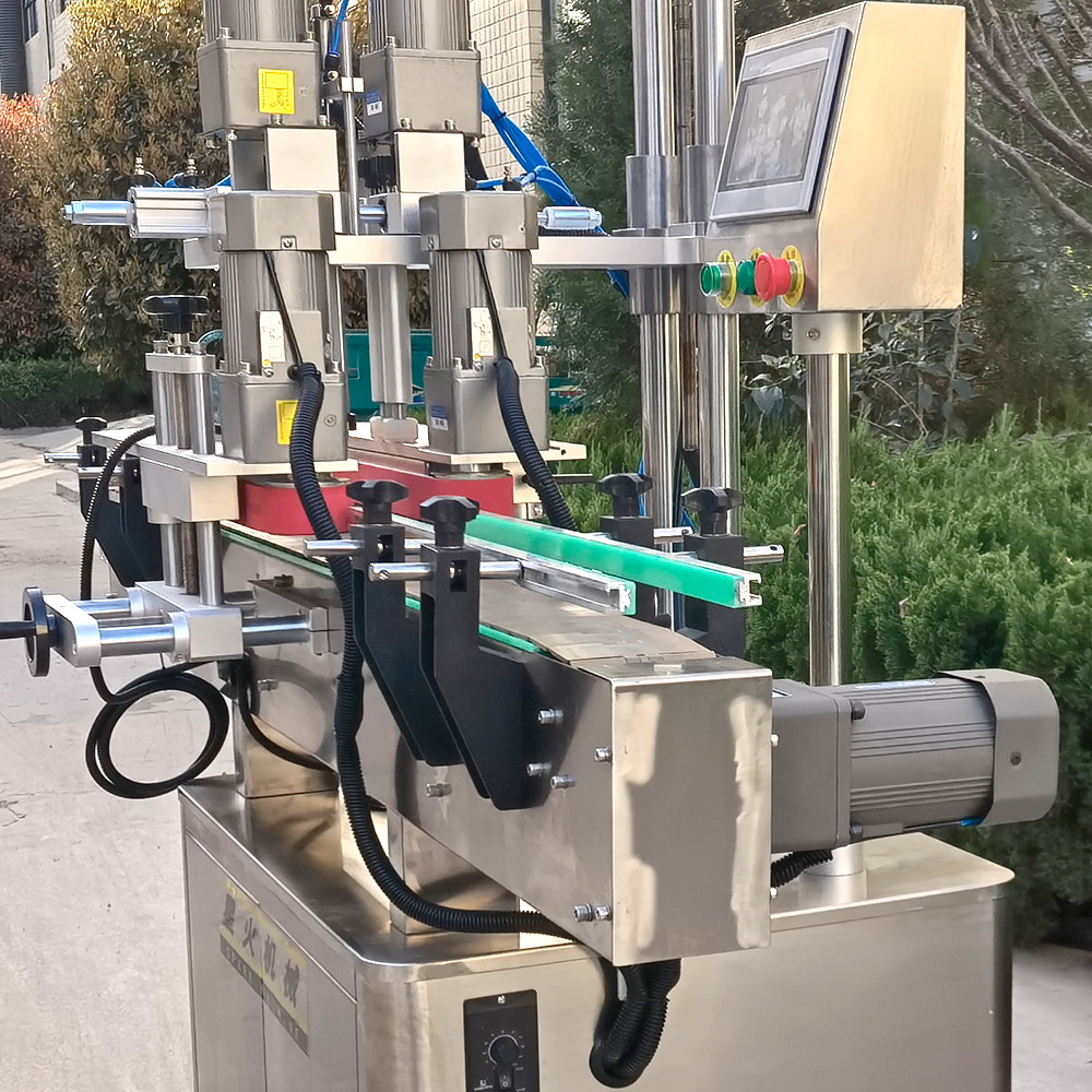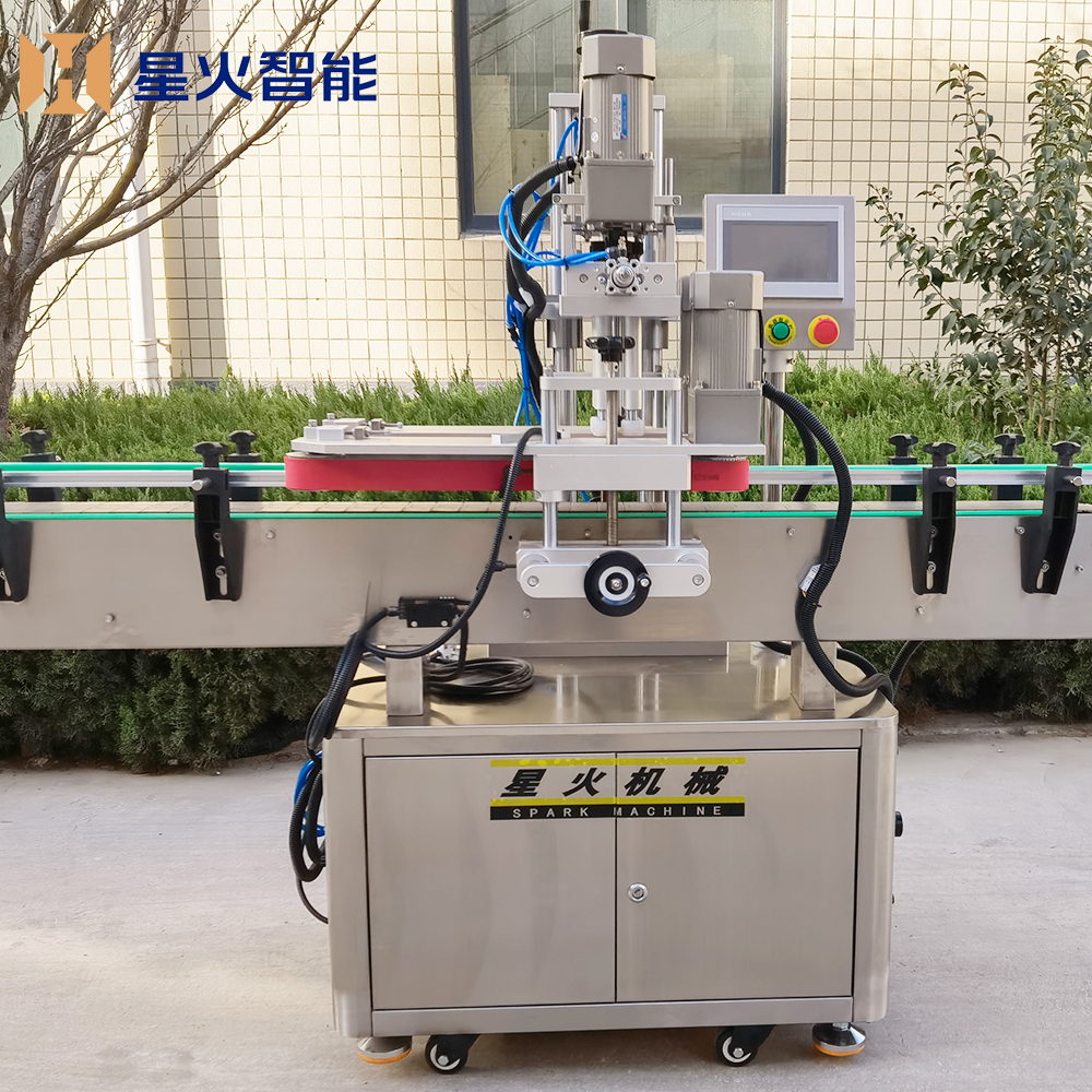 全自動(dòng)夾蓋旋蓋機(jī)的工作原理是經(jīng)過(guò)PLC控制系統(tǒng)的數(shù)據(jù)優(yōu)化后,先通過(guò)自動(dòng)送料系統(tǒng)將所需的蓋子送達(dá)到指定位置,然后再由夾蓋裝置對(duì)準(zhǔn)并開(kāi)始進(jìn)入旋蓋工序,全自動(dòng)夾蓋旋蓋機(jī)旋蓋頭會(huì)按照工作人員預(yù)設(shè)的扭矩?cái)?shù)值旋轉(zhuǎn)蓋子,直到達(dá)到所需的密封程度。整個(gè)工作過(guò)程可根據(jù)實(shí)際情況進(jìn)行調(diào)整。